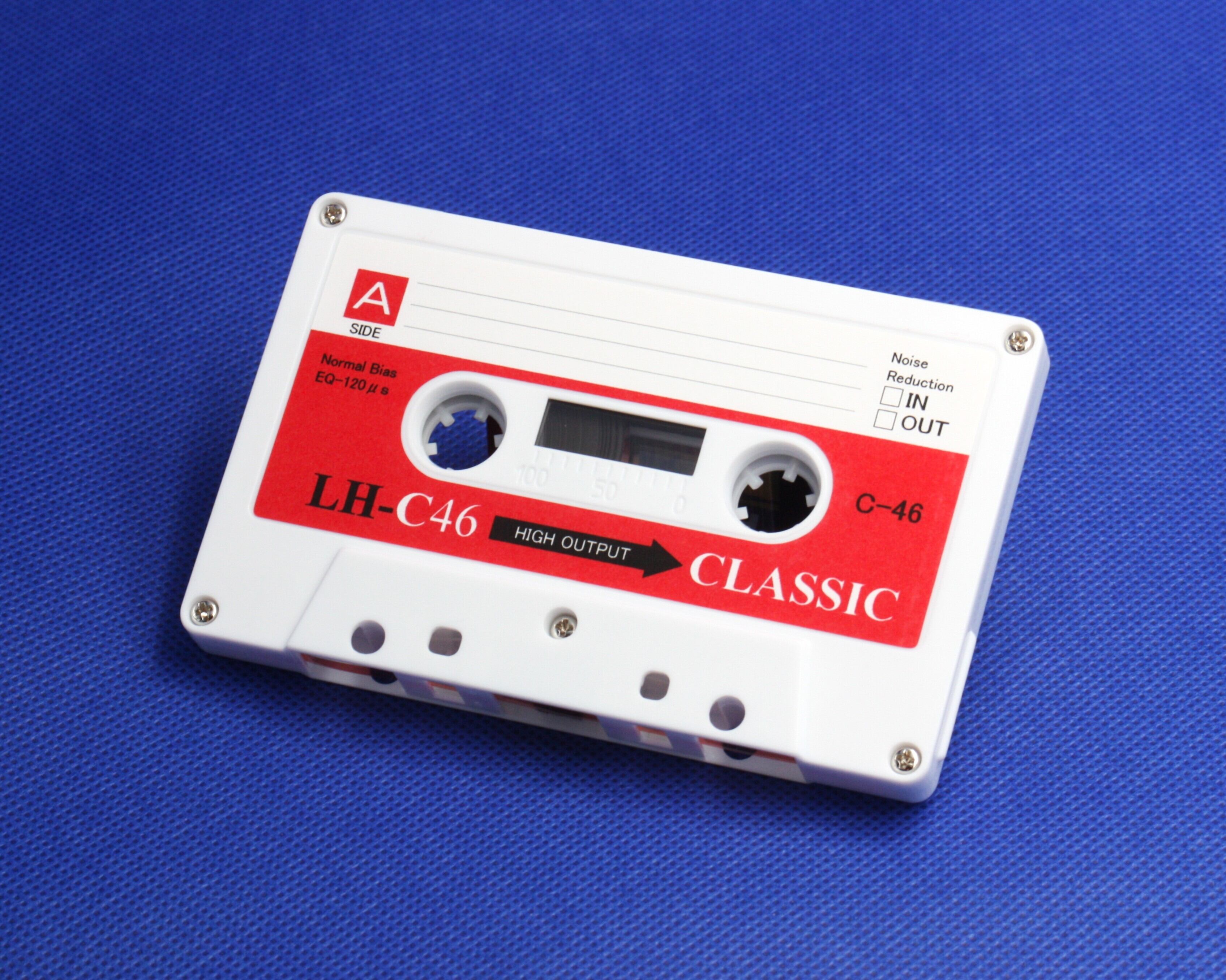 「レトロ調デザインのカセットテープ」は、現代の音楽用カセットテープをベースに、1970年代後半~1980年代始めの雰囲気を再現したレーベルやインデックスカードでパッケージした製品です。